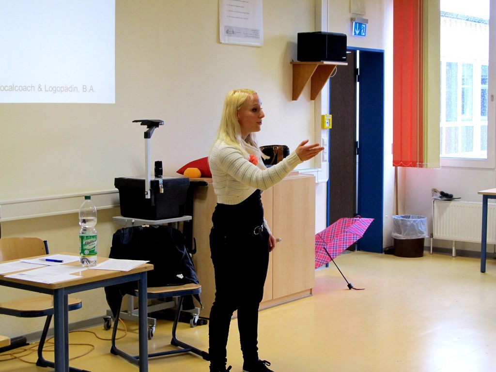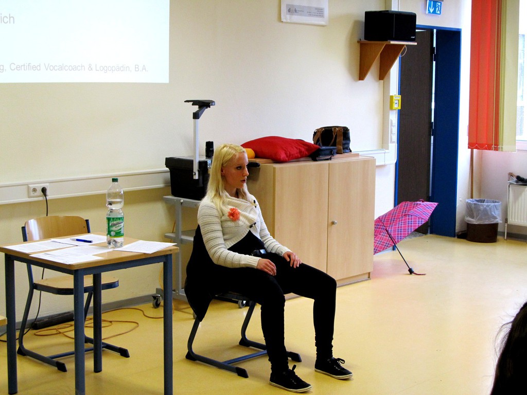Uelzen. Anstelle der üblichen Chorprobe fand am vergangenen Samstagvormittag im Musiksaal des Herzog-Ernst-Gymnasiums ein Gesangsworkshop für die Sängerinnen und Sänger des Chors statt. Als Referentin zu Gast war Kerstin Schlüsselburg, die sich seit einigen Jahren als Logopädin mit der Funktionsweise der menschlichen Stimme befasst und nun als ausgebildeter Vocalcoach für Rock- und Popmusik z.B. Hilfestellung dabei gibt, wie man seiner Stimme beim Singen keinen Schaden zufügt. Schlüsselburg, einst selbst Schülerin des HEG und Sängerin unter dem damaligen Chorleiter Wolfgang Knappe, hatte die Idee, neben ihrem Einzelunterricht für interessierte Sänger auch einen Workshop für Chöre anzubieten und traf damit beim jetzigen Chorleiter Jan Frigger auf offene Ohren. Mit neuen Stücken u.a. aus den Bereichen Rock, Pop und Gospel bereitet sich der HEG-Chor gerade auf das nächste Schulkonzert Anfang Juli und die Teilnahme am Chorfestival Eurotreff im September in Wolfenbüttel vor. Da kam die Workshopidee genau zum richtigen Zeitpunkt. Auf unterhaltsame Weise und mit vielfältigen Übungen veranschaulichte Schlüsselburg zunächst die grundlegenden Abläufe im Körper bei der Atmung und der Tonerzeugung. Auch Unterschiede zwischen der Kopfstimme und der im Rockgesang wichtigen Bruststimme wurden durch eigenes Ausprobieren für alle erfahrbar. Die Zeit verging wie im Flug, so dass sich der eine oder andere für eine kostenlose Einzelstunde angemeldet hat und auch eine weitere Zusammenarbeit in Form von Workshops für beide Seiten vorstellbar ist.